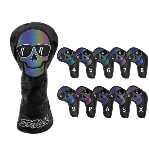 Juego de accesorios de Golf impermeables de PU Premium 2025, nuevo diseño de Calavera, cubiertas de cabeza de Putter de hierro, protectores de Club duraderos