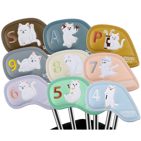 2025 Venta caliente 9 piezas Premium PU felpa gato dibujos animados Golf Iron Head Covers Set impermeable Golf Club protectores Accesorios